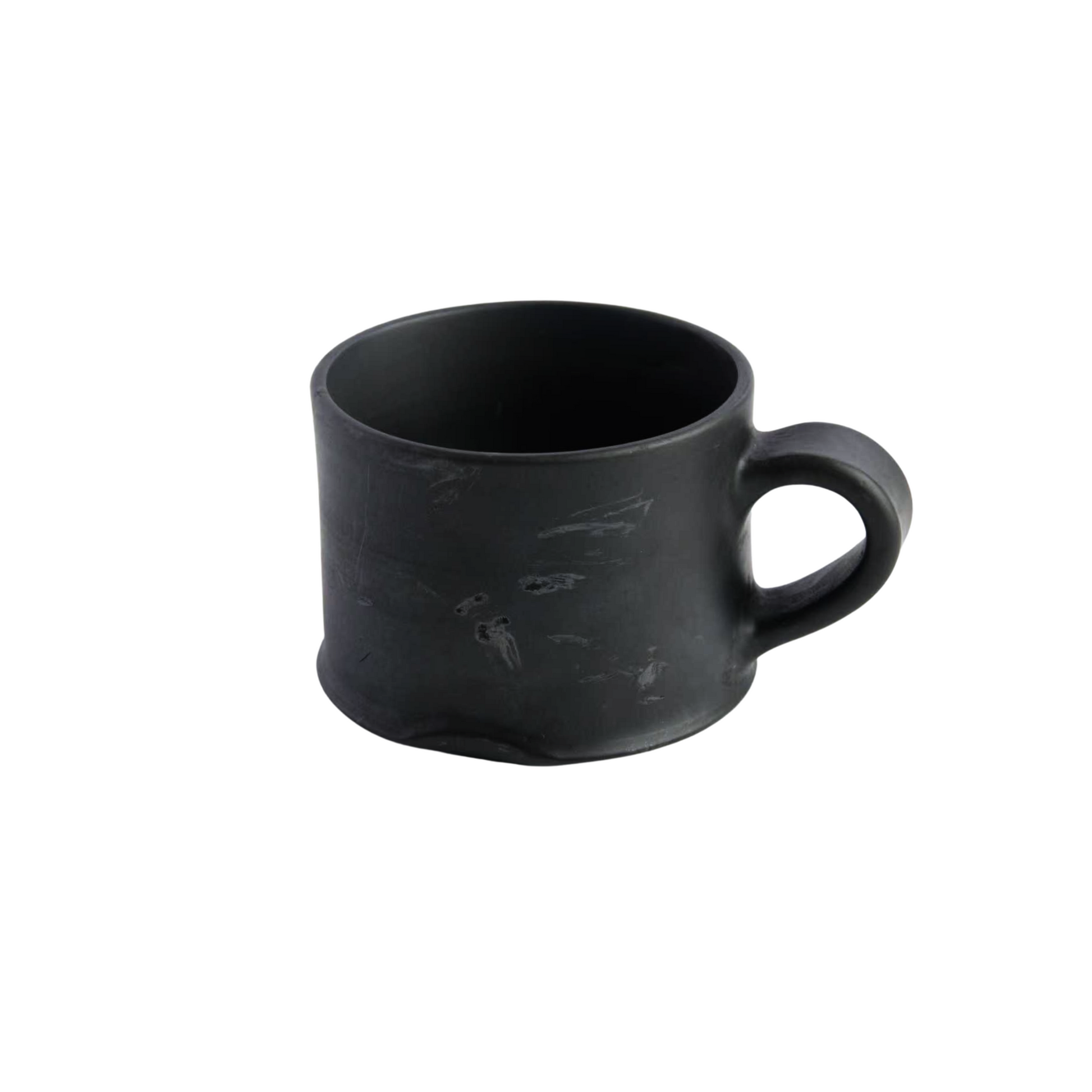Inspired by high-altitude black-pottery traditions, each cup is individually hand-pinched, carrying subtle fingertip textures and gentle, one-of-a-kind curves. The matte charcoal surface recalls quiet mountain nights, creating a serene backdrop for the aroma of coffee or tea.
